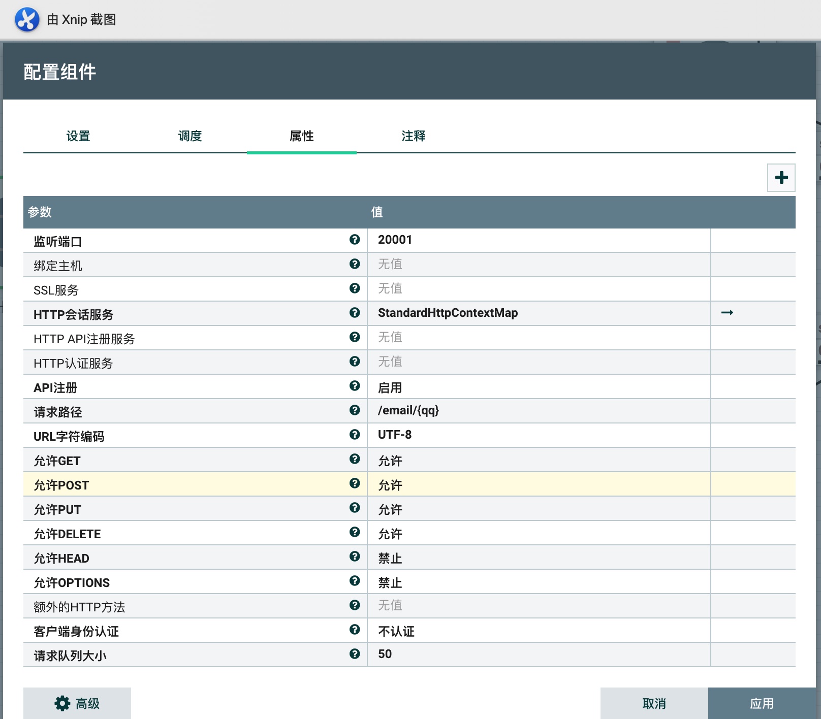 - HTTP会话服务:配置HTTP控制器服务,用于缓存HTTP请求信息,与HandleHttpResponse需共用同一个控制器服务