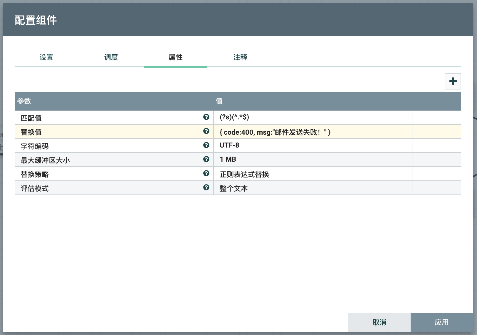 - 替换值:配置替换内容,本流程中替换为邮件发送成功或失败相关的JSON信息
