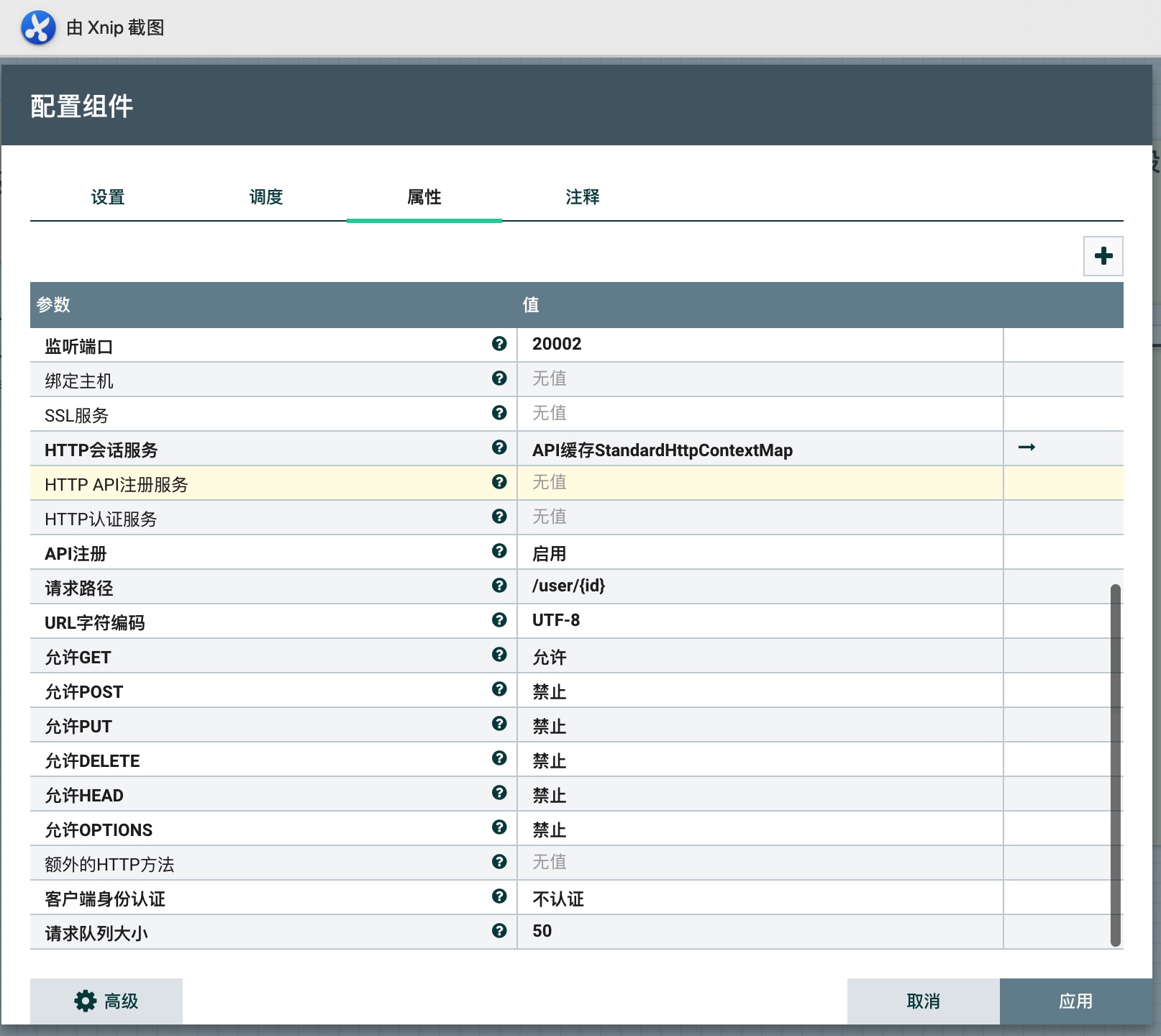 - HTTP会话服务:配置HTTP控制器服务,用于缓存HTTP请求信息,与HandleHttpResponse需共用同一个控制器服务